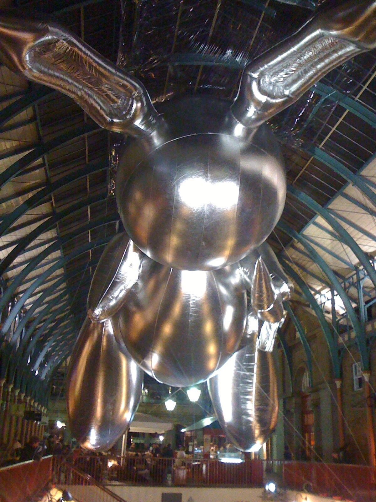 So, cash in hand we head off for a much needed beer and head off to Peter Parkers Rock n’Roll club for a couple, then I take Jay for a wander around Seven Dials, Covent Garden until we bump into a 53ft inflatable Silver Bunny