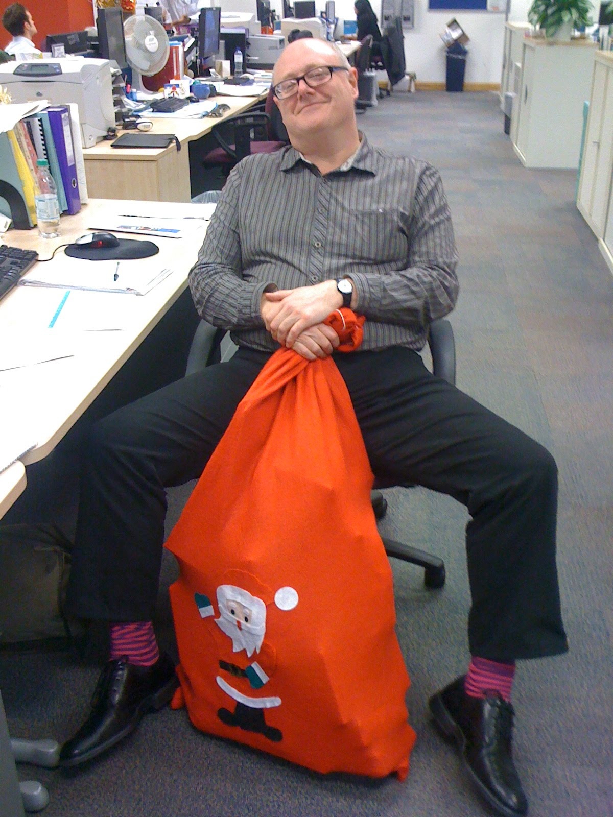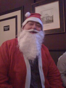 We decant to the White Horse and Bower (just the local boozer next to the office), to start off the Christmas Secret Santa present opening with Derick dressed as Mr Claus