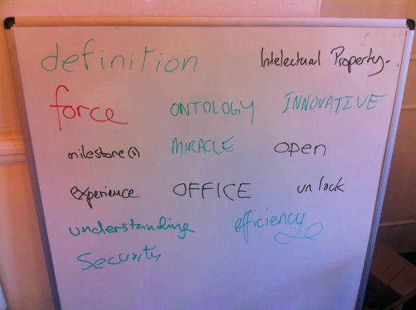 The day started off with Glyn & Hadley doing a double act, kicking off the intro workshop setting out the high level vision and asking us to write a word on the board associated with the project;